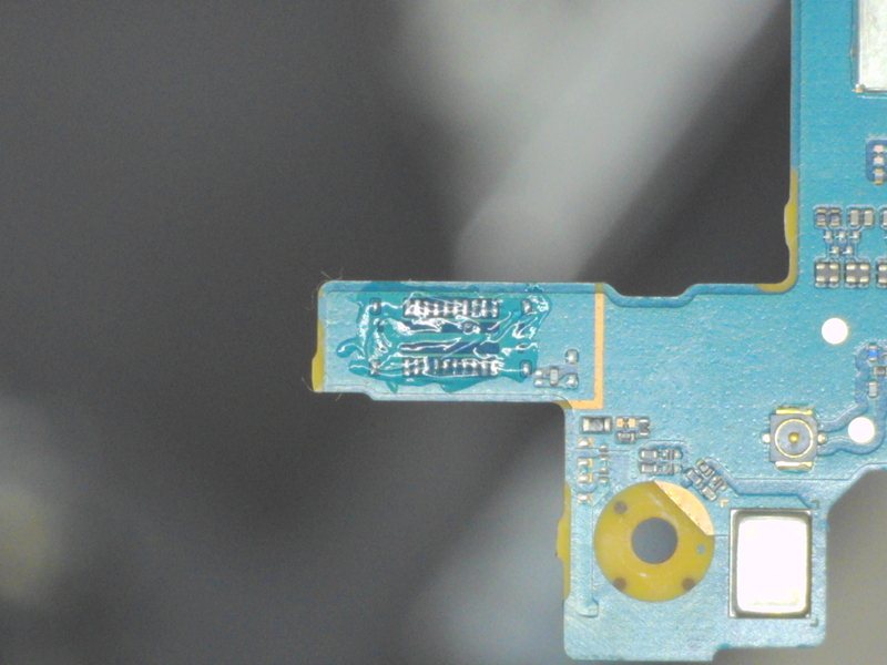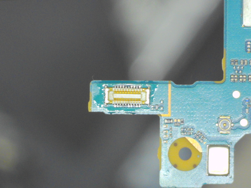 顕微鏡で少し拡大してみると基板側にコネクタのピンが6本残っているのがわかります。