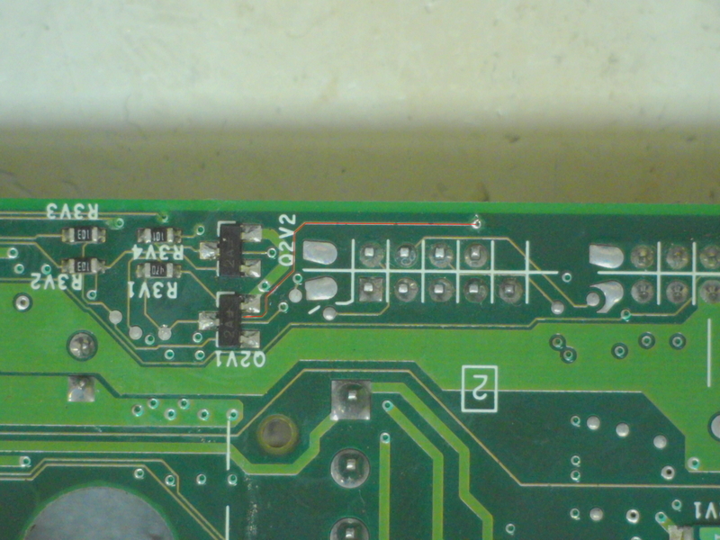 Q2V2と書かれている右側の回路が何だか少し途切れているように見えませんか?