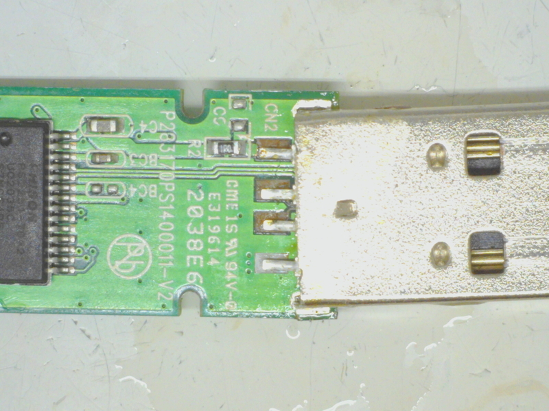 端子が折れてしまったUSBメモリを修理させていただきました (溶接点修復修理)